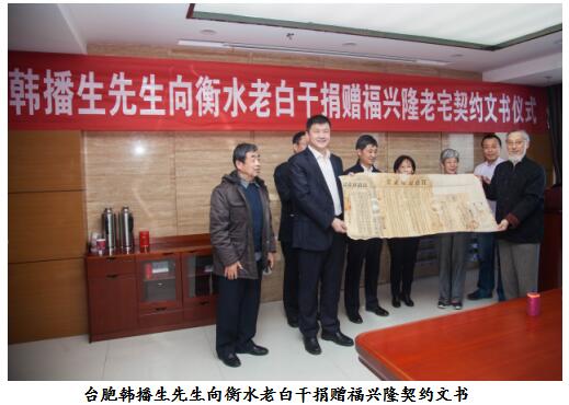 臺胞韓播生先生向衡水老白干捐贈福興隆老宅契約文書儀式