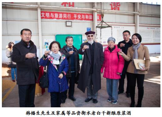 最后,由衡水白干酒業(yè)公司副總經理張春生等有關領導陪同韓先生一行到衡水老白干生產廠區(qū)進行了走訪參觀。張總對公司的發(fā)展歷程、品牌文化、古法釀造工藝特點等進行了詳細解說,期間韓先生還品嘗了公司新釀出來的原漿酒,從萬噸糧倉到發(fā)酵釀酒,從原酒儲存再到成品生產,整個釀造生產過程參觀下來,韓先生對衡水老白干的發(fā)展深深嘆服,亦感慨萬千:終于完成父親的夙愿!