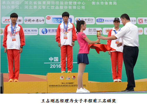 經(jīng)過(guò)激烈角逐,各比賽項(xiàng)目都賽出了較好的成績(jī),酒業(yè)公司總經(jīng)理王占剛為女子半程馬拉松賽獲獎(jiǎng)選手頒發(fā)了獎(jiǎng)杯。